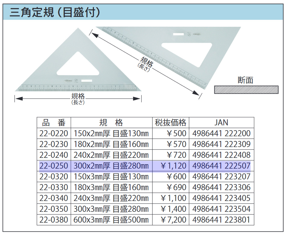 製図1年秋/三角定規 タケダ 300×2mm 目盛付