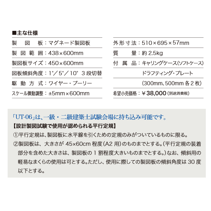 将来の建築士試験会場に持込が可能です。