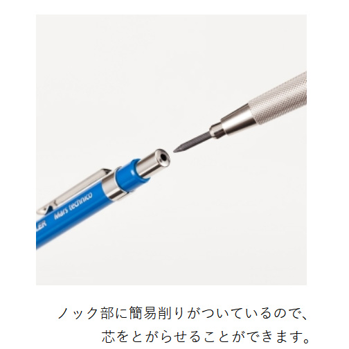 抜群のバランスと耐久性を誇る、ベストセラーの製図用2mm芯専用ホルダーです。ノック部に簡易削りが付いています。
