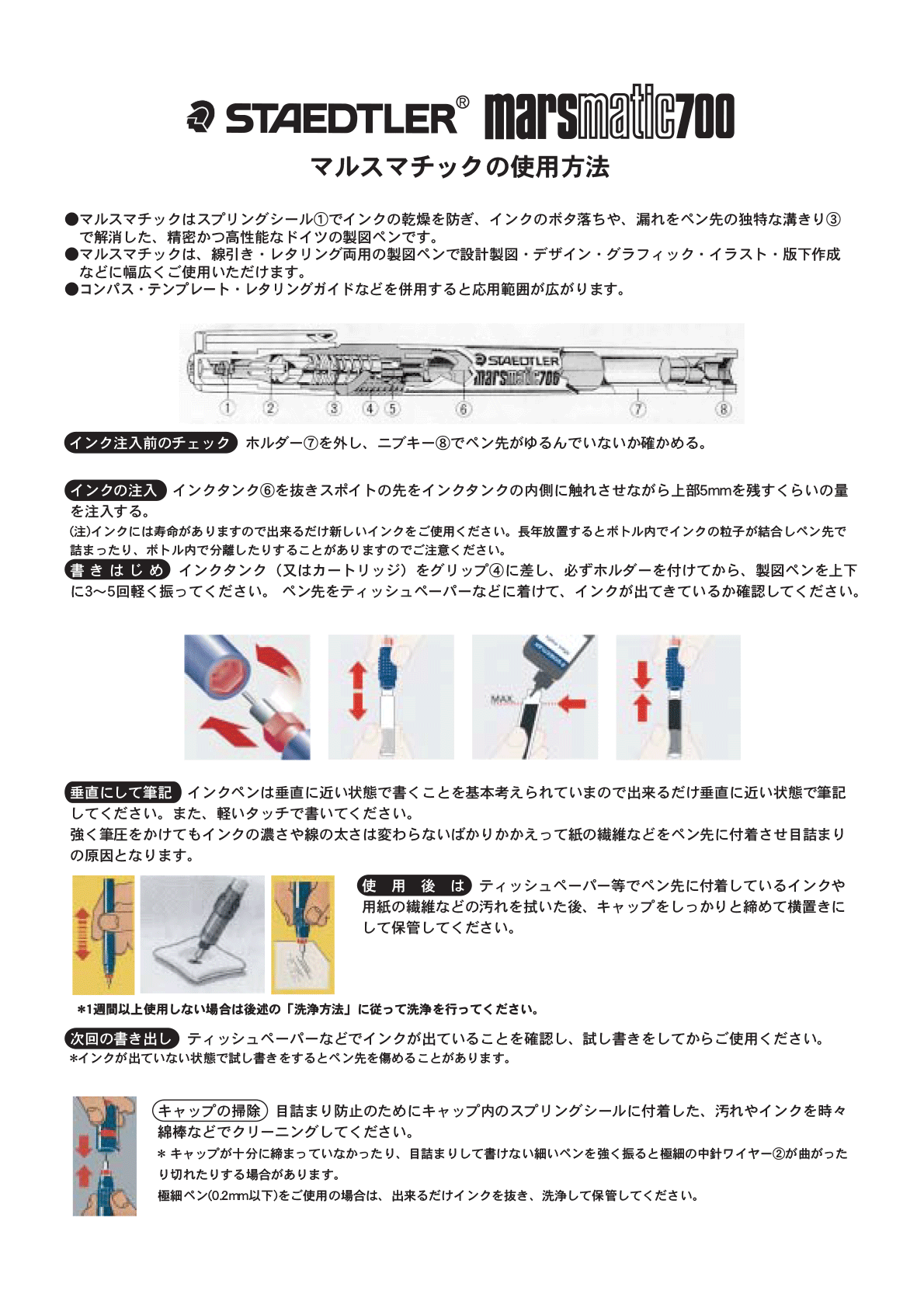 「製図ペンの使い方・保管方法について」もご参照下さい。